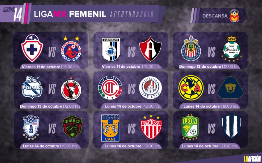 Este viernes 11 de octubre comenzará dicha jornada, con el duelo entre el Cruz Azul frente al equipo de Veracruz en el Estadio 10 de Diciembre; de igual manera, el conjunto del Atlas visitará al Querétaro en La Corregidora.