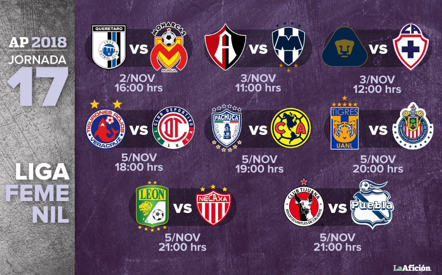Este viernes inicia la actividad de la Liga MX Femenil en su penúltima jornada, la 17, por eso te traemos todos los partidos con sus fechas y horarios para que no le pierdas la huella a tu equipo favorito.