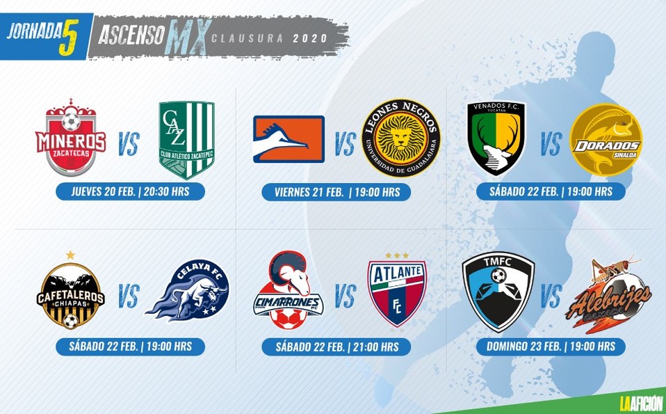El día jueves 20 de febrero se reanudarán las acciones en el Ascenso MX. En su jornada número 5, las cosas para los equipos empiezan a definirse, por lo que los resultados obtenidos a partir de esta semana serán fundamentales para el camino a Liguilla.