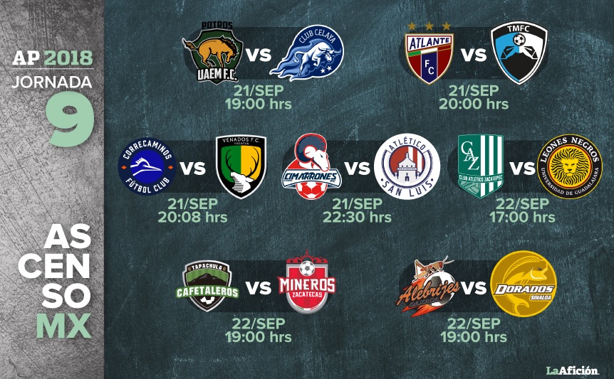 Este viernes arranca la novena jornada del Ascenso MX, cuyo torneo de Apertura 2018 llega a su parte decisiva para los clubes que pretender disputar la Liguilla.