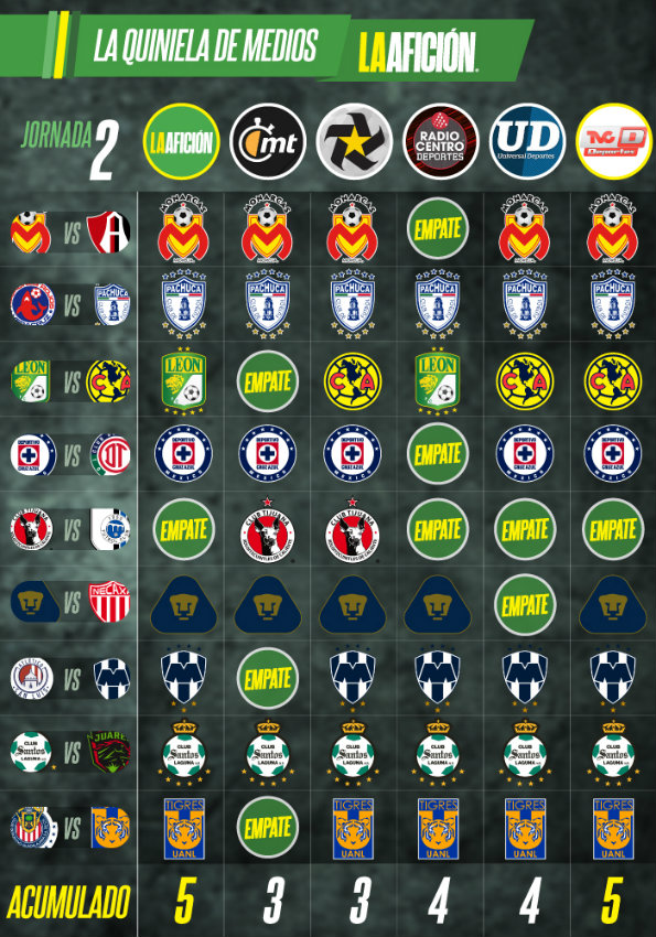 Se jugó la primera jornada del Apertura 2019 en la Liga MX y en nuestra Quiniela La Afición, tomamos el liderato de la tabla general, al acertar el pronóstico en cinco de los nueve partidos de la fecha.