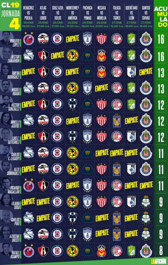 Conoce los pronósticos de los colaboradores de Milenio Televisión y La Afición para la cuarta fecha del Clausura 2019
