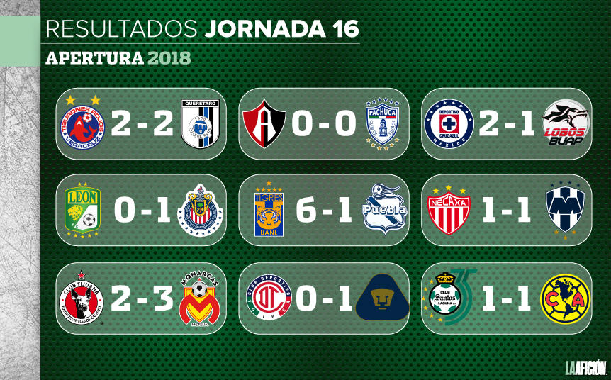 Terminó la penúltima fecha del Apertura 2018 en la Liga MX, donde los resultados alteraron la tabla general de forma que ya hay cinco equipos clasificados a la Liguilla del certamen.