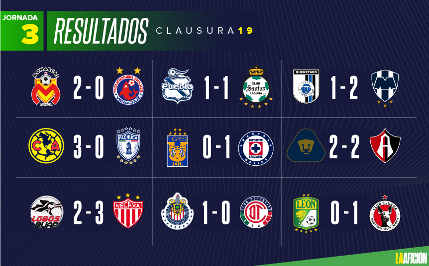 Las Chivas iniciaron con todo el Clausura 2019 de la Liga MX, pues se colocan como líderes de la tabla general después de los resultados de la jornada 3, donde se impusieron 1-0 a Toluca y mantienen el paso perfecto.