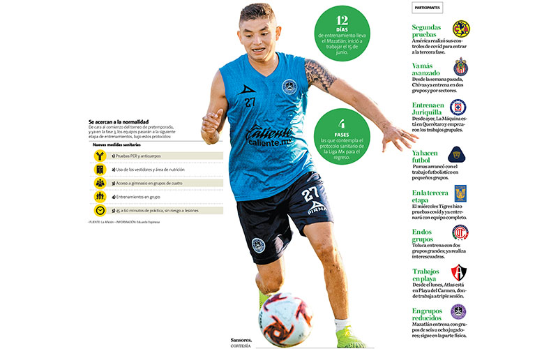 El atacante detalló cómo ha sido el regreso a los entrenamientos, y la complejidad que ha representado el cambio de sede para ellos: “En los primeros días, a algunos hasta nos salieron ampollas, porque volver a usar los zapatos fue bastante incómodo, estás en una rutina en la que no te pega el sol, en la que no te pones esos zapatos, en una cinta haces tus ejercicios. Ahora todo es diferente, la pisada, la arena en la que estamos trabajando, el campo de golf que no tiene el terreno todo recto, el sol es más caliente que cuando estábamos en Morelia”.
