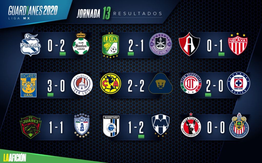 Se fue una jornada más en el torneo Guard1anes 2020 de la Liga MX, donde a falta de cuatro jornadas y con Xolos y Santos con un partido pendiente, se empieza a definir la tabla general y el panorama rumbo a la fase final del torneo, misma que ya tiene a su primer invitado de forma matemática: el líder León, quien pase lo que pase, jugará al menos el repechaje rumbo a la liguilla.