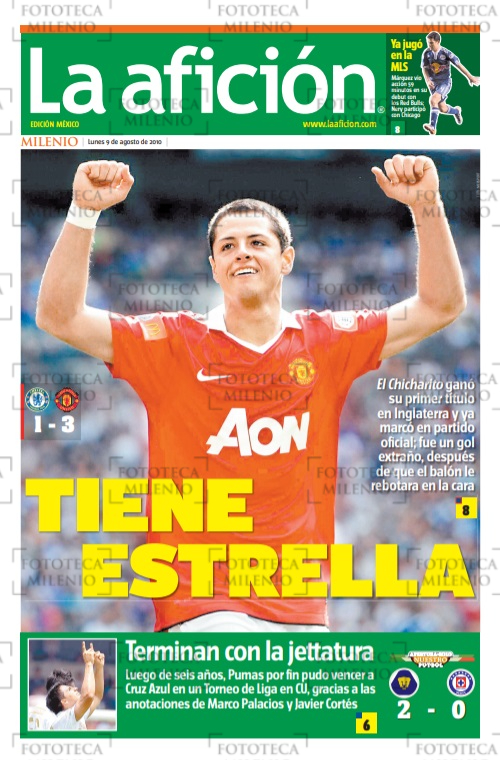 La portada de La Afición sobre el fichaje de Chicharito al Manchester United (Fototeca Milenio)