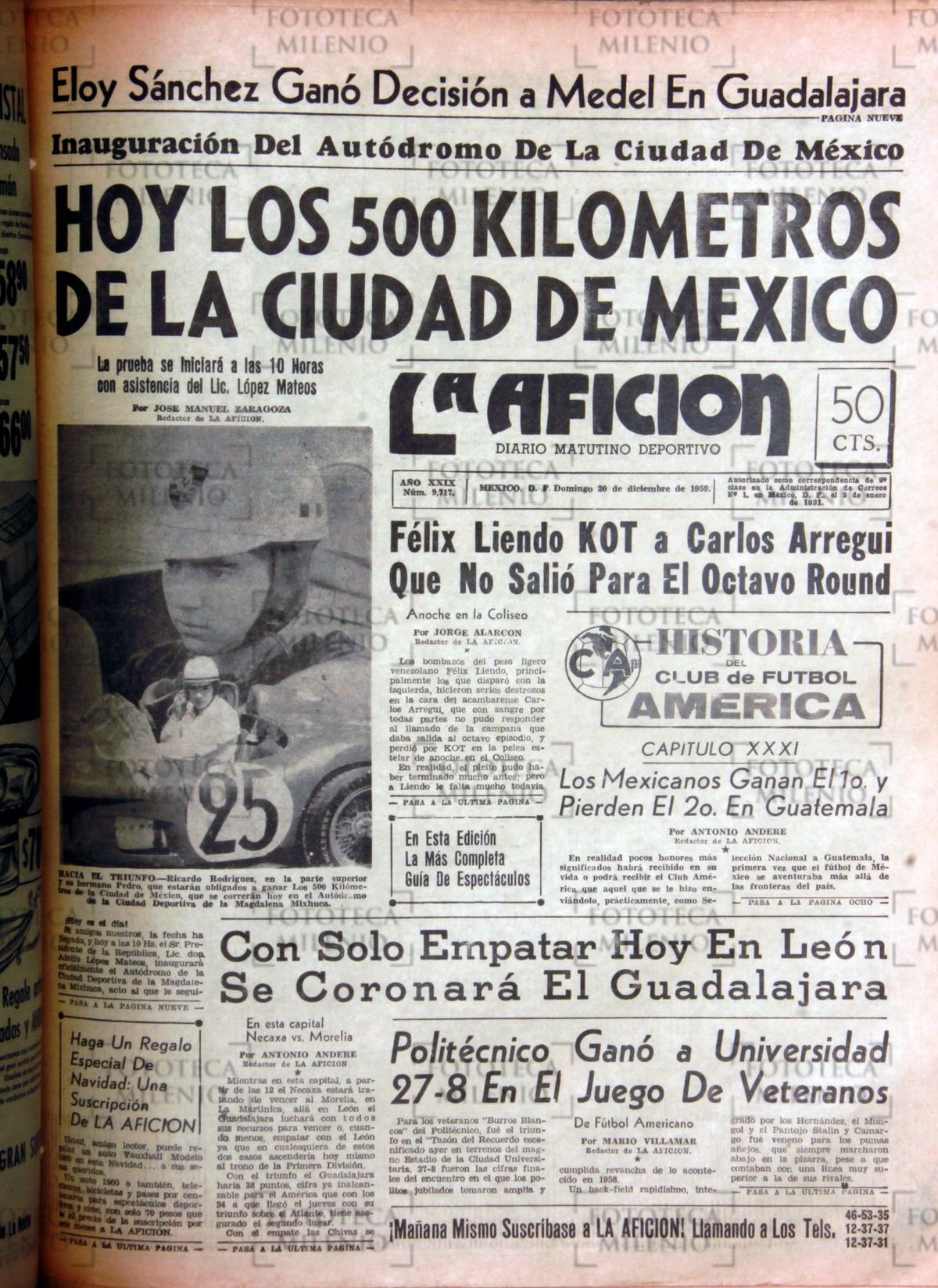 Durante la década de los 50 surgieron dos escenarios deportivos de gran tradición en México: el Estadio Olímpico Universitario y el Autódromo, que posteriormente fue nombrado como el de los Hermanos Rodríguez, en homenaje a Ricardo y Pedro Rodríguez.
