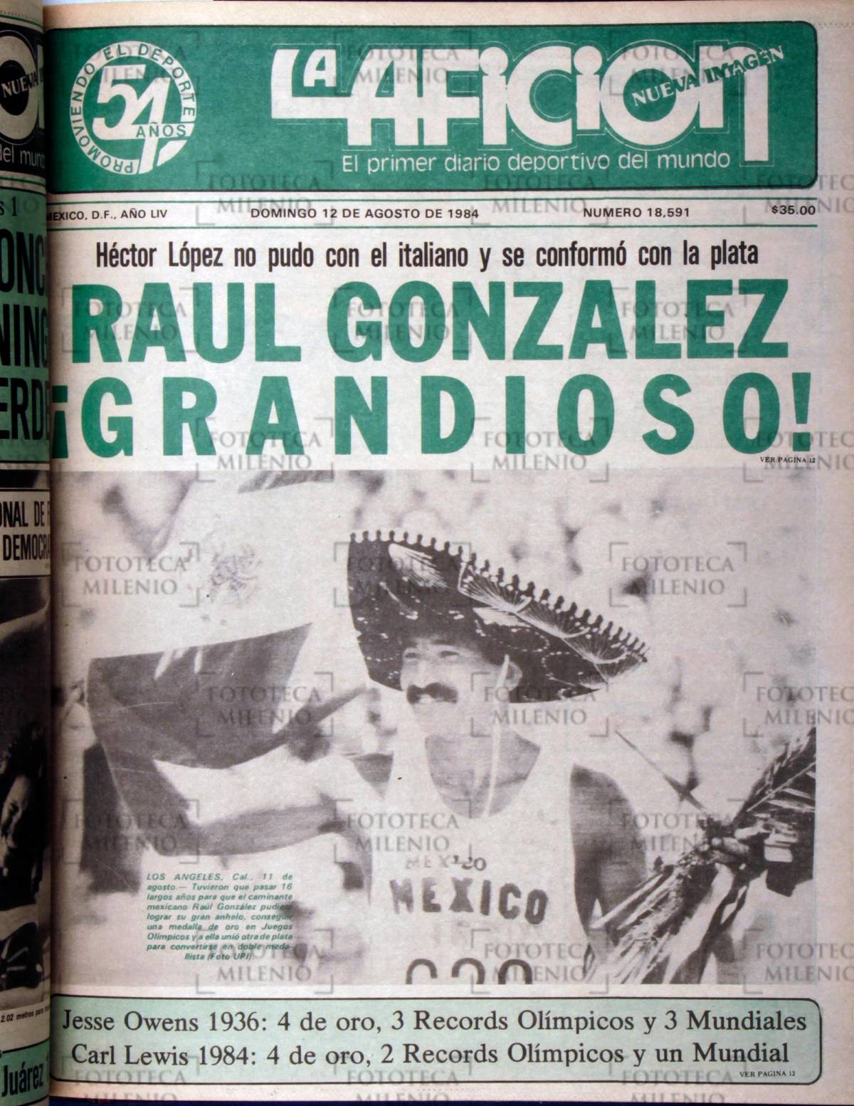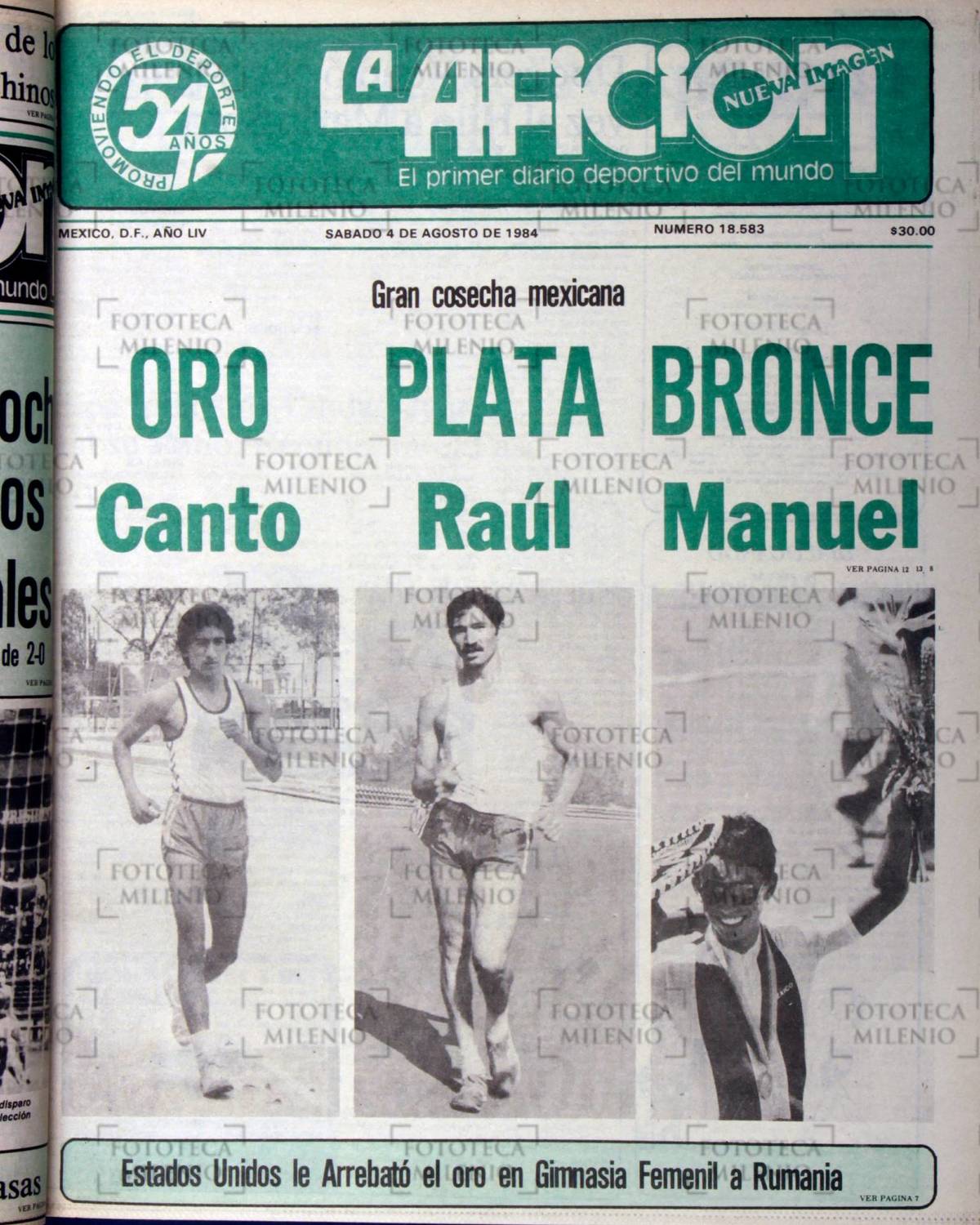 En Los Ángeles 1984 Ernesto Canto y Raúl González hicieron el 1-2 (oro y plata, respectivamente) en la marcha de 20 kilómetros; días después Raúl ganaría la presea dorada en la prueba de 50 km.