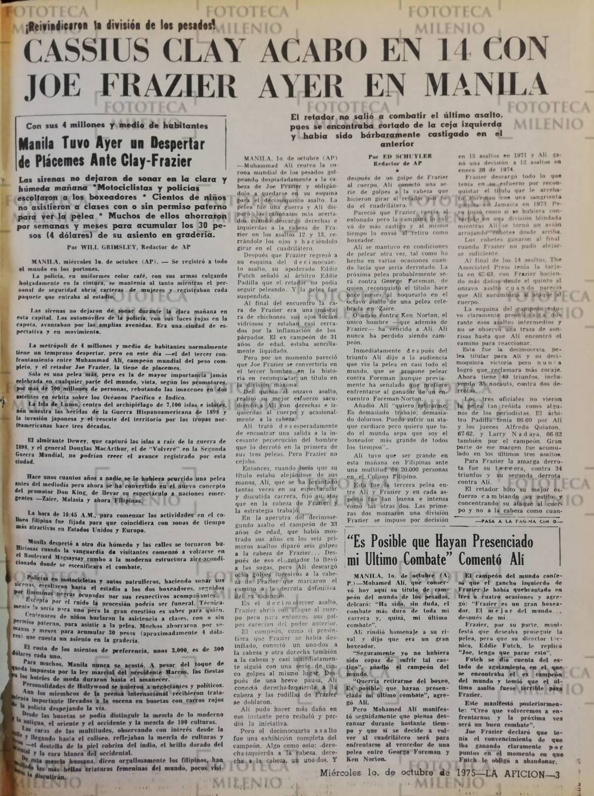 Cassius Clay acabó en 14 con Joe Frazier ayer en Manila