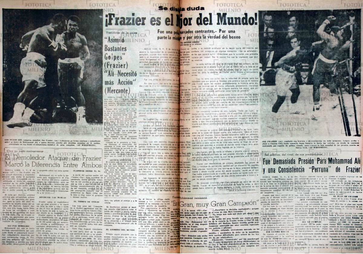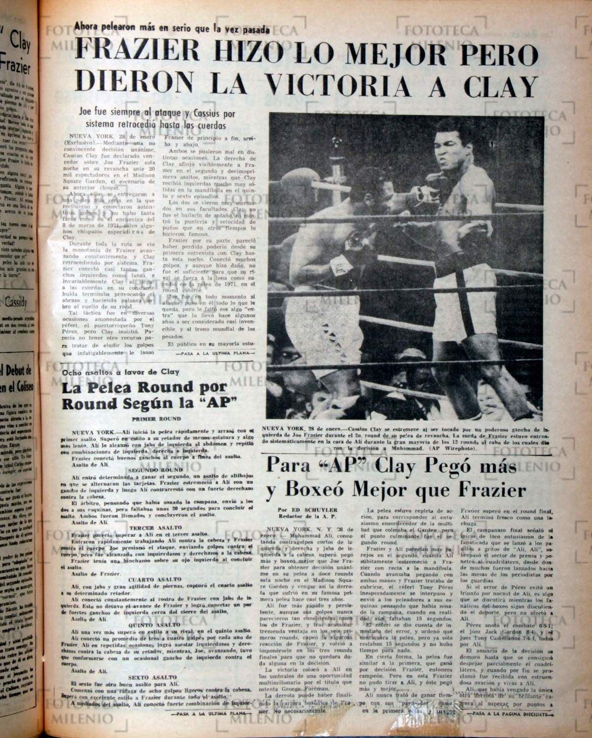 Joe Frazier demostró la legitimidad de su condición de campeón mundial de peso completo, cuando esta noche venció a una silueta difusa, desdibujada y en ocasiones grotesca del antiguo Cassius Clay, rebautizado como Muhammad Ali, a partir del momento que diversificó su actividad mezclando el boxeo con cuestiones religiosas y políticas. Distó mucho de ser la gran pelea que se esperaban que todos esperaban, aunque tuvo momentos dramáticos a lo largo de su desarrollo.