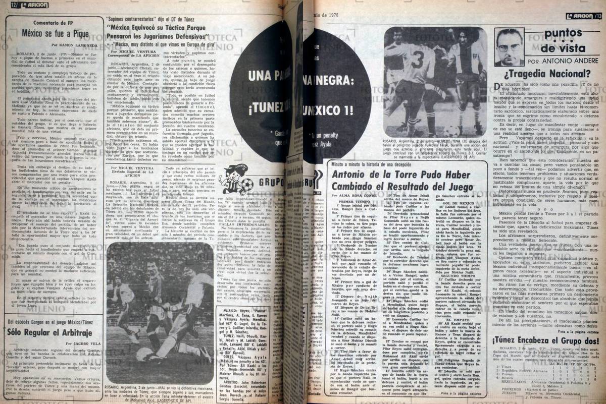 ¡Una página negra se ha escrito hoy por el futbol mexicano…! La sorpresa es mayúscula, con un tinte doloroso que no admite disculpas. La Selección Nacional Mexicana perdió con los debutantes de Túnez 3-1. Los 25,000 espectadores que presenciaron el choque en el “Gigante del Arroyito”, vieron cómo la escuadra africana superó a México con un entusiasmo continuado y gran velocidad, en un debut que prometía más de los aztecas.