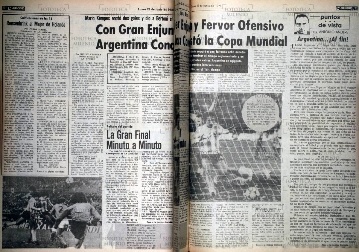 Portada de La Afición con el campeonato de Argentina en 1978 (Fototeca Milenio)