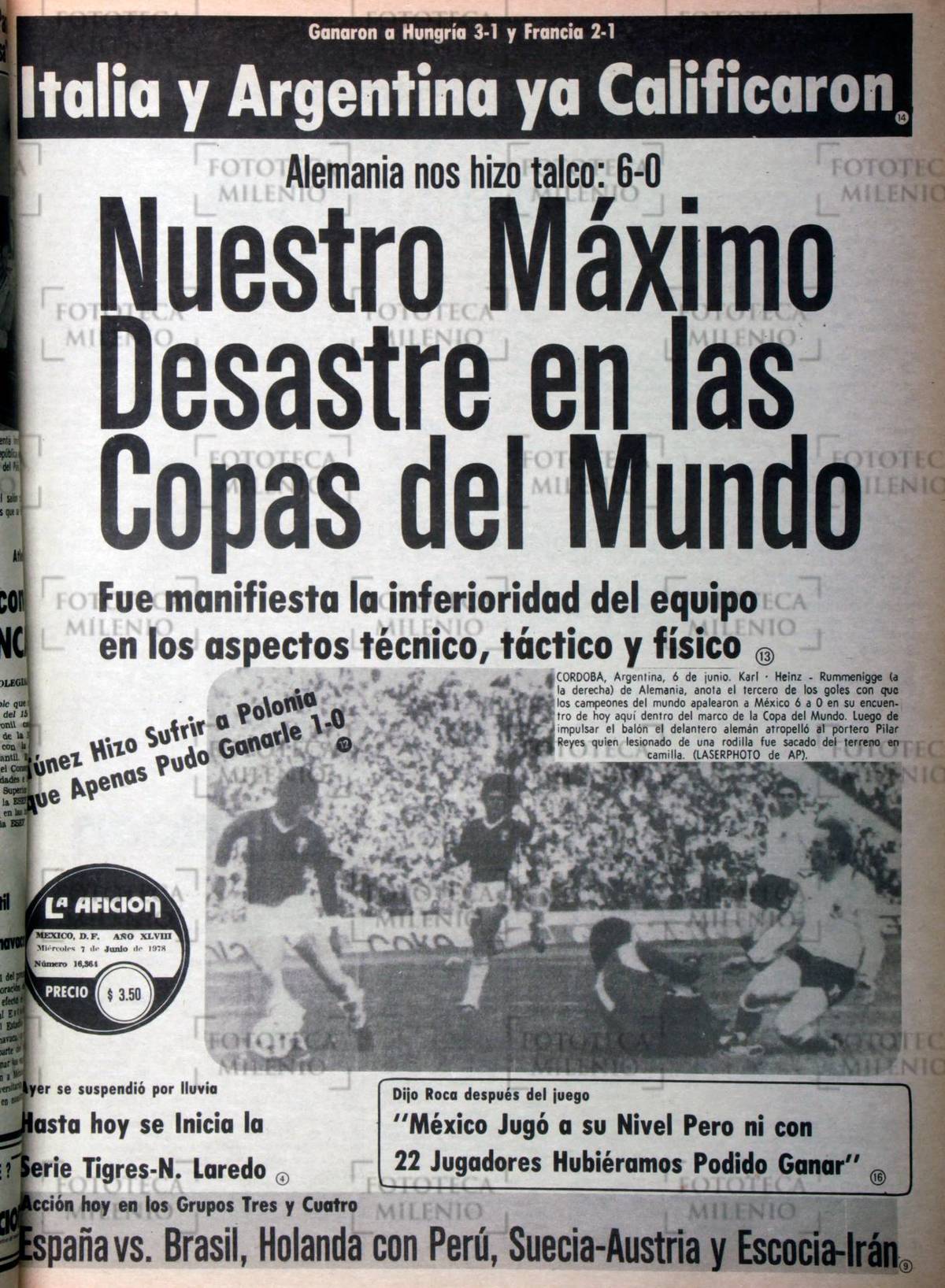 Es la peor goleada que México ha recibido en Copas del Mundo, donde el balance señala 16 derrotas en 22 partidos, distribuidos en 8 eventos ecuménicos.