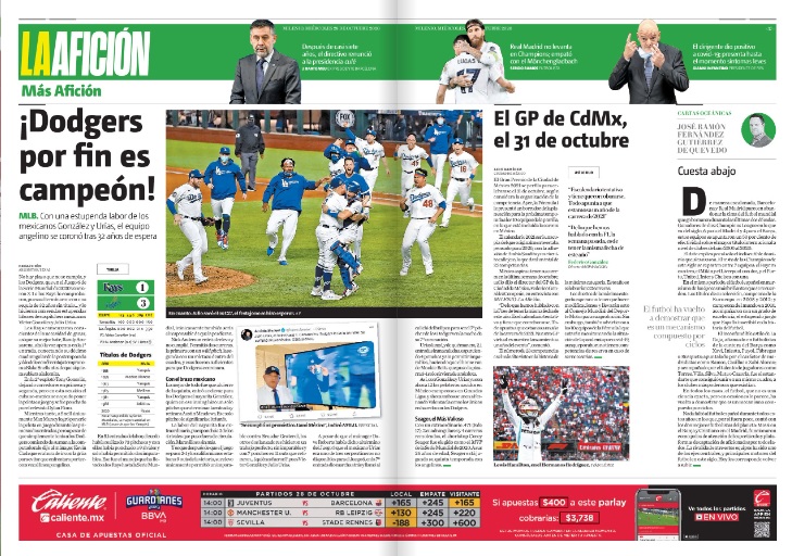 Los Dodgers de Los Ángeles conquistaron la séptima Serie Mundial de su historia, gracias a la gran actuación de dos mexicanos. En el juego decisivo contra los Rays de Tampa Bay, Víctor González se llevó el triunfo con cuatro outs de labor, mientras que Julio Urías lanzó en 2.1 entradas para conseguir el salvamento.