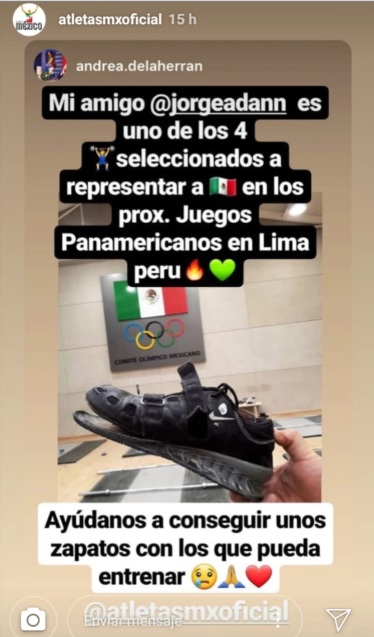 Jorge Cárdenas fue uno de los cuatro atletas que calificó a los Juegos Panamericanos Lima 2019, en dicha disciplina, pero el sinaloense junto con una compañera, publicaron en redes sociales que no cuenta ni siquiera con los tenis adecuados para una plena competencia.