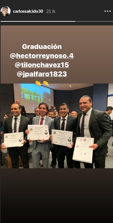 “Graduación” fue la frase que acompañó su foto en Instagram, en la que también salen Héctor Reynoso y Paulo Quirarte, ex compañeros de Carlos en Chivas.