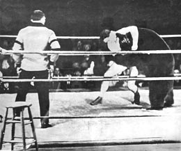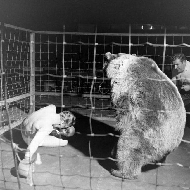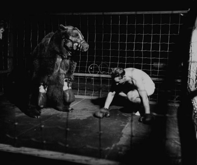 Con un bozal y guantes colocados en las garras del animal y varios años de entrenamiento para prepararlo, los osos podían subirse al ring para chocar fuerzas con algún peleador profesional de box y lucha libre, o con algún voluntario.