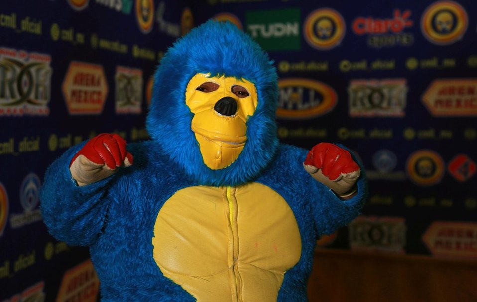 Kemonito está muy cerca de cumplir los 53 años de edad. Detrás de esa máscara peluda se aprecian unos ojos vidriosos y abajo del traje hay un cuerpo mallugado por tantos golpes y lesiones que ha sufrido en estos más de 30 años de trayectoria.