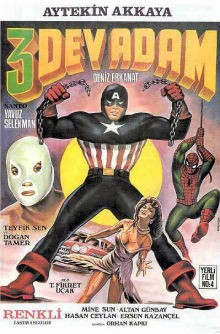 De esta forma, en los años setenta el cine de Turquía trajo al mundo la película 3 DEV ADAM, mejor conocida como El Santo y Capitán América vs Spiderman. Esta cinta trata del Hombre Araña malvado que, auxiliado por un grupo delictivo, se dedica falsificar dinero y a matar a cualquier persona que se atraviese en su camino.