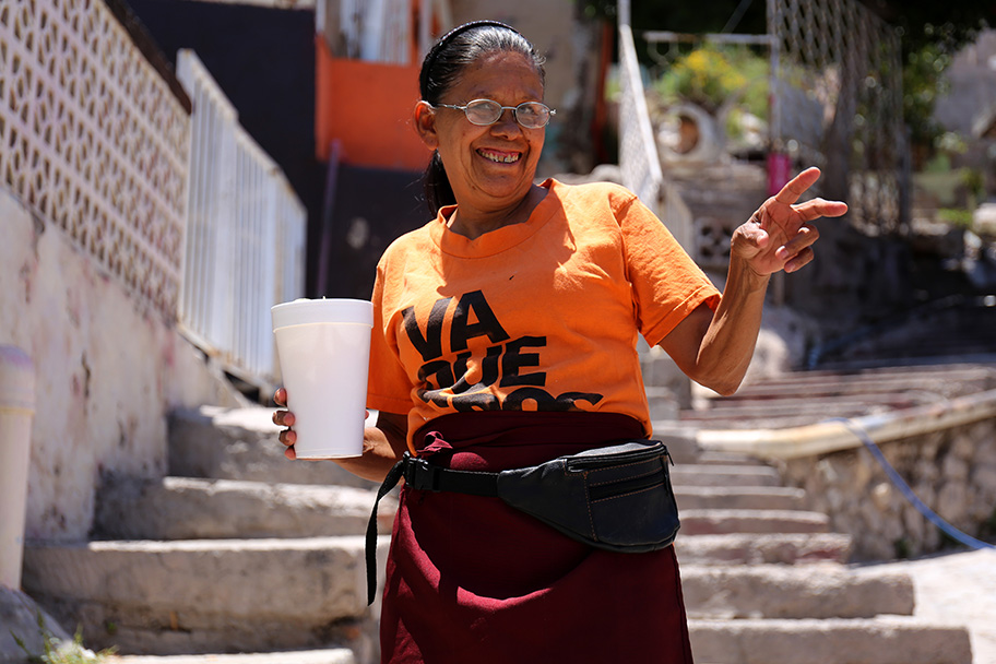 Con sus peculiares frases, manera de vender, de gritar y de bailar, hace vivir un ambiente diferente, positivo y de alegría para quienes consumen sus "papitas fritas".