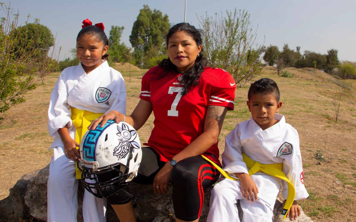 Sin embargo, ahora que es mamá, destaca que sus hijos ahora están en periodo formativo de karate, pero alberga la esperanza de que algún día incursionen en el tochito bandera, ya que también estuvieron en gimnasia y natación.