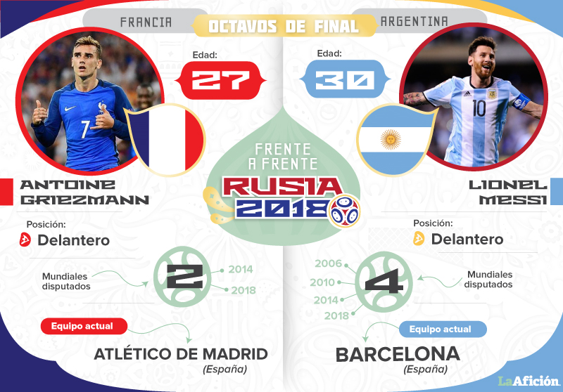 De la mano de Antoine Griezmann, Kylian Mbappe y Paul Pogba, la selección francesa se enfrenta a Lionel Messi y la selección argentina en la Arena Kazán.