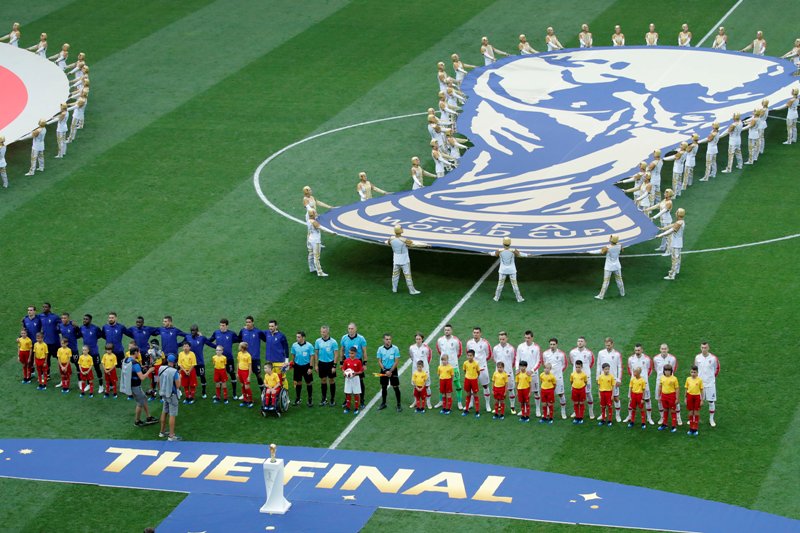 09:53 HORAS: Los jugadores de Francia y Croacia saltan a la cancha del Estadio Luzhniki.