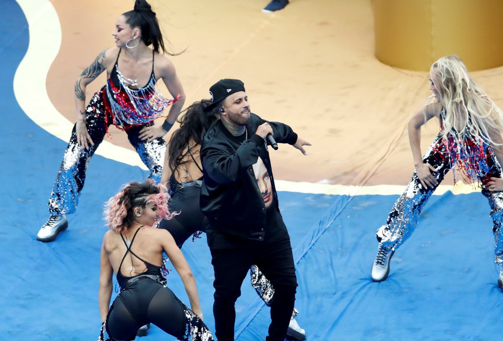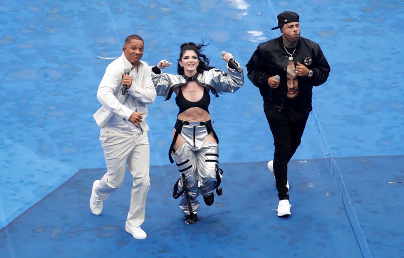 09:37 HORAS: Era Istrefi, Nicky Jam y Will Smith cantan la canción de 'Live it up' y se enciende el campo.