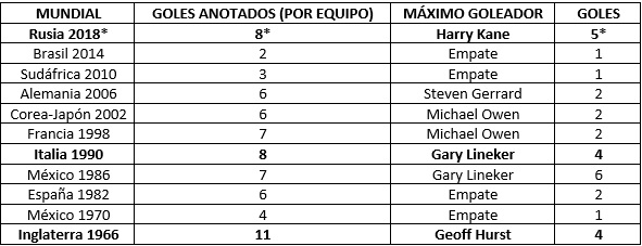 GOLEO INGLÉS EN MUNDIALES DESDE 1966