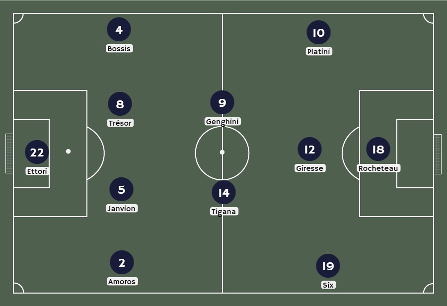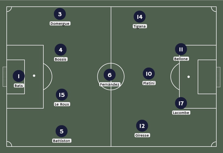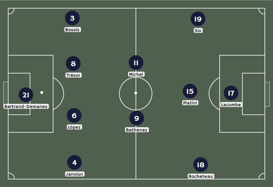 El estratega puso en práctica a todo este equipo, caracterizado por el 4-4-2 o por un 4-3-3, que en ocasiones pasaba a ser un 4-5-1 o, incluso, a dejar sólo un hombre en la contención, tal y como sucedió en la Euro de 1984. Una cosa era clara, todo se sostenía y se financiaba en la labor que el rombo que se formaba en el medio campo, pero todo alrededor de la figura de Platini.
