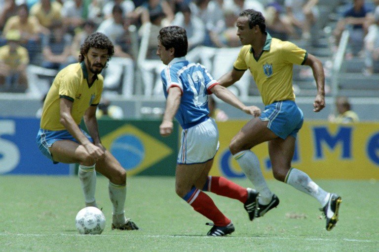 Para los Cuartos de Final, Francia viajó a Guadalajara, para medirse a otro de los favoritos para llevarse el Mundial: Brasil. Este equipo había comenzado el torneo con dudas, pero para este instante estaban, prácticamente, alcanzando el nivel que habían mostrado en 1982.