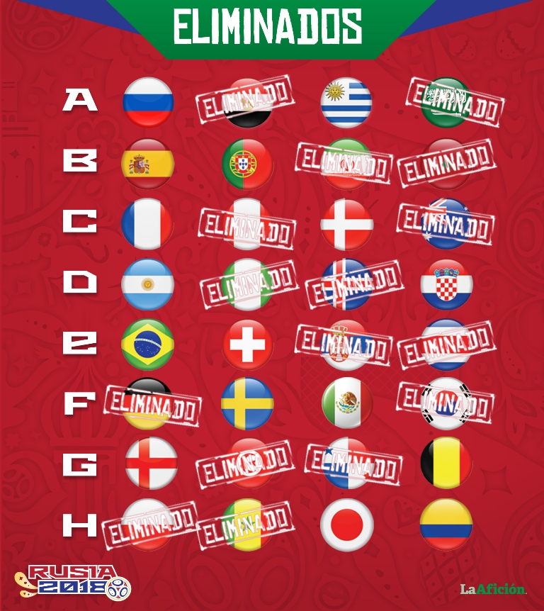 Terminó la fase de grupos del Mundial de Rusia 2018, donde 16 equipos se medirán en la ronda de Octavos de Final y otras 16 escuadras emprenderán el viaje de vuelta a casa tras quedar eliminados.