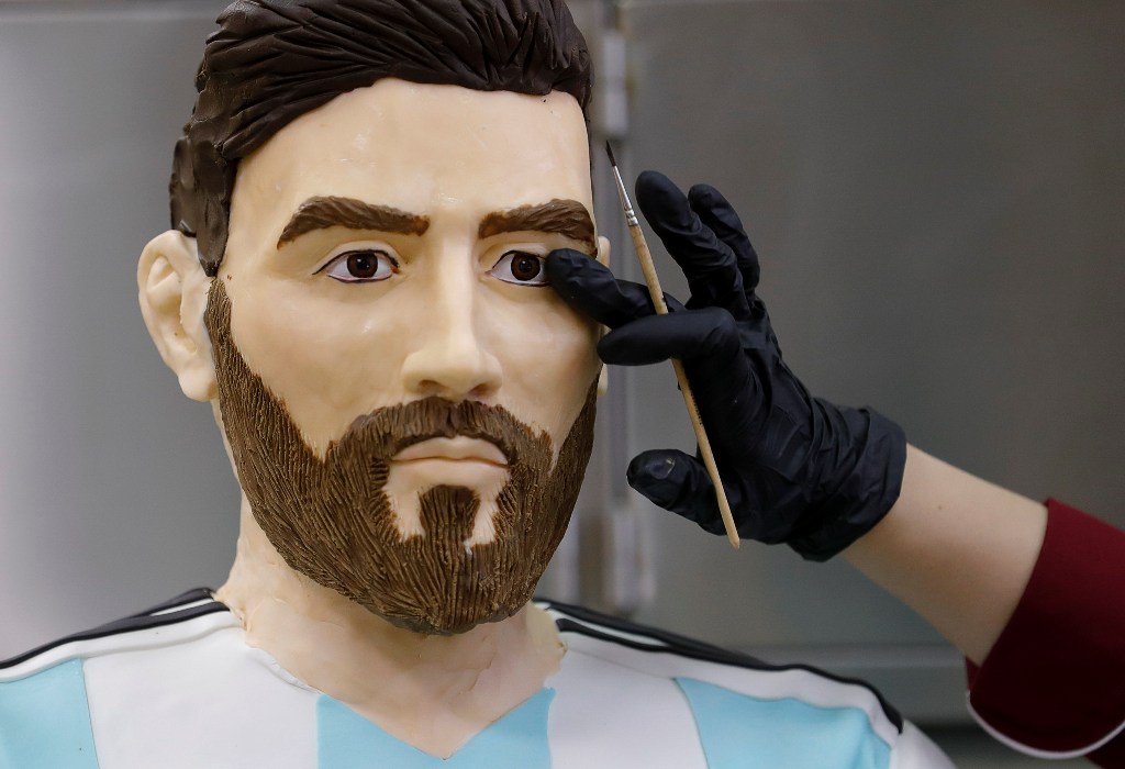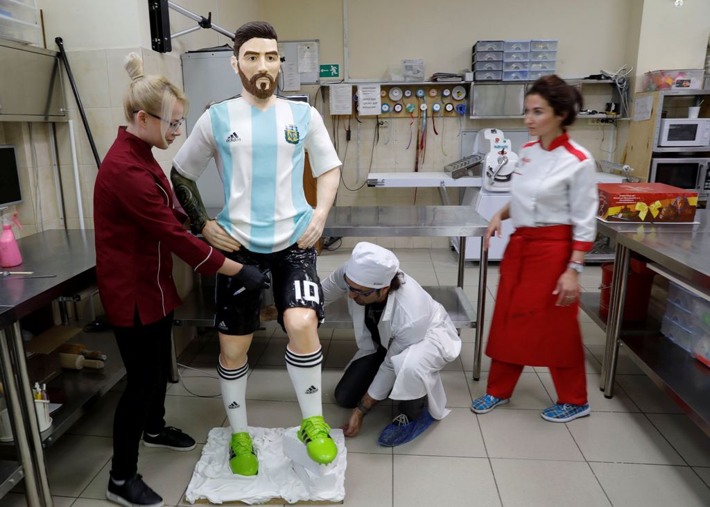 Un equipo de cinco empleados de Altufyevo Confectionery de Moscú trabajó durante casi una semana para crear el pastel con 60 kilos de chocolate que celebrará el trigésimo primer cumpleaños del delantero argentino el domingo.