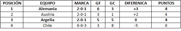 Argelia, por diferencia de goles, quedó eliminada por Austria; no pasó de la Fase de grupos. Por su parte, los alemanes superaron a España y a Inglaterra en su sector de la segunda etapa, boleto que les valió su pase a las Semifinales, en donde derrotaron a Francia, para posteriormente perder en la Final ante Italia. Fueron Subcampeones.