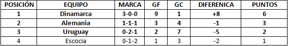 No obstante, los daneses, con tantos de Olsen y Eriksen, vencieron 2-0 a la Mannschaft sobre la cancha de la Corregidora de Querétaro, resultado que les valió el primer lugar.