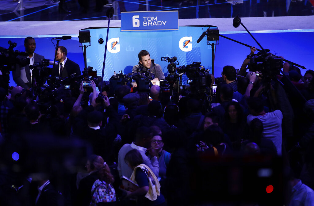 Él ya sabía de lo que se trata esto. Aunque antes se realizaba en otro día y con otro formato, Brady ya lo ha hecho ocho veces, siendo la primera en 2001 como el quarterback sustituto de Drew Bledsoe. Para nadie es extraño que su stand, el mismo número 6 que había tenido Goff, tuviera a más de 50 cámaras y cerca de 100 personas esperándolo.