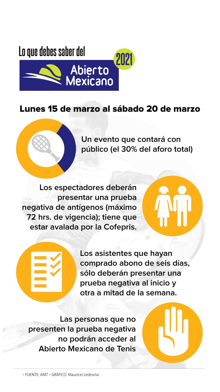 El lunes 15 de marzo arranca la edición número 28 del Abierto Mexicano de Tenis, una de las mejores competiciones deportivas de nuestro país, en el que a pesar de la pandemia del coronavirus contará con público, aunque no como tradicionalmente estamos acostumbrados, pues solo podrán tener el 30 por ciento del aforo.