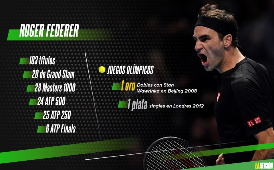 Federer llega a la Ciudad de México con un total de 103 títulos de la ATP, 20 de Grand Slam, 28 Masters 1000, 24 ATP 500, 25 ATP 250 y 6 ATP Finals, siendo el máximo ganador de este último torneo.