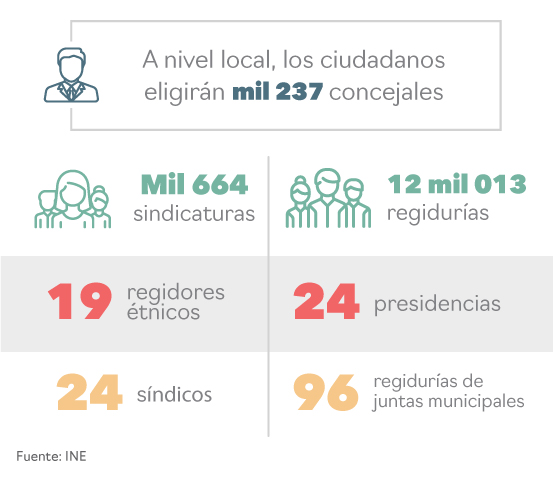 Además, a nivel local serán elegidas 972 diputaciones estatales y mil 596 presidencias municipales.