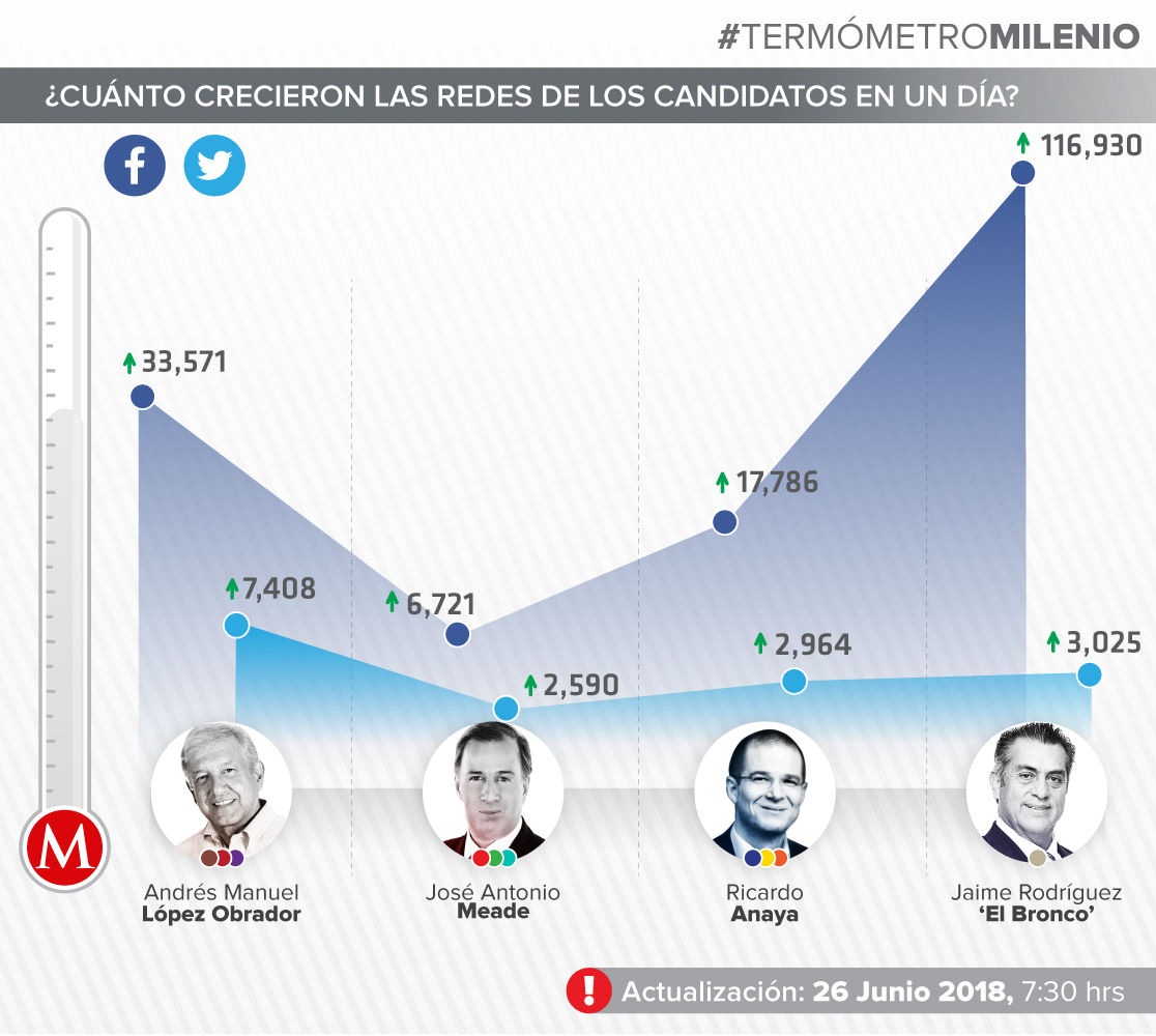 Con la promesa de derrotar al PRI y a Morena, el candidato del PAN-PRD-MC sumó 17 mil "me gusta" y casi 3 mil followers.