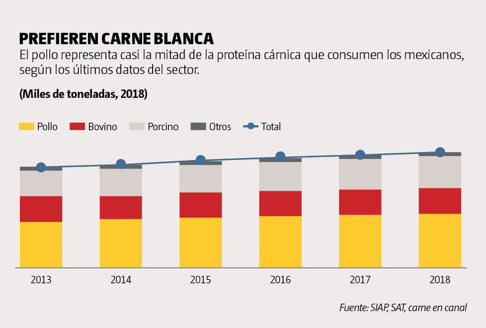 En respuesta a una solicitud de información de Milenio, el Consejo señala que entre enero y febrero de este año se produjeron 329,303 toneladas de carne de res, 265,411 toneladas de carne de cerdo y más de medio millón de toneladas de pollo.
