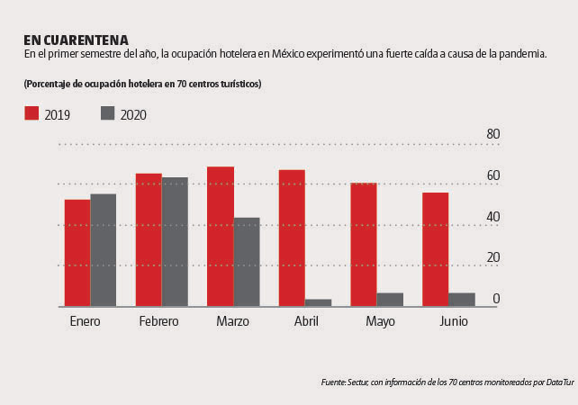 En un escenario poco optimista, con estimaciones oficiales de que el sector no se recuperará por completo antes de 2023, algunos hoteles ya están operando y se esfuerzan por atraer turistas a pesar del tope de ocupación de 50% fijado por las autoridades para prevenir contagios; otros decidieron mantener las cortinas abajo, pues sus costos de operación no alcanzan a ser cubiertos bajo las actuales condiciones de trabajo.
