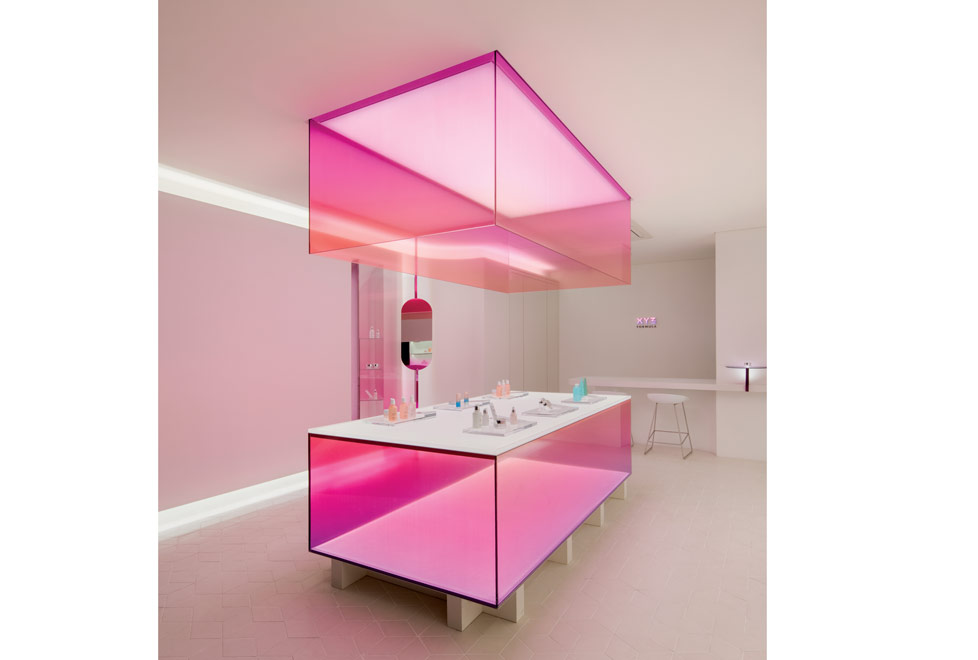 Con el fin de contar su propia historia llega esta nueva tienda insignia de X Y Z Formula Cosmetics . Desde el exterior se crea una expectativa para el visitante debido a su imponente fachada, y al adentrarse, el espacio mismo captura la atención de las personas y estimula sus sentidos desde la primera impresión.