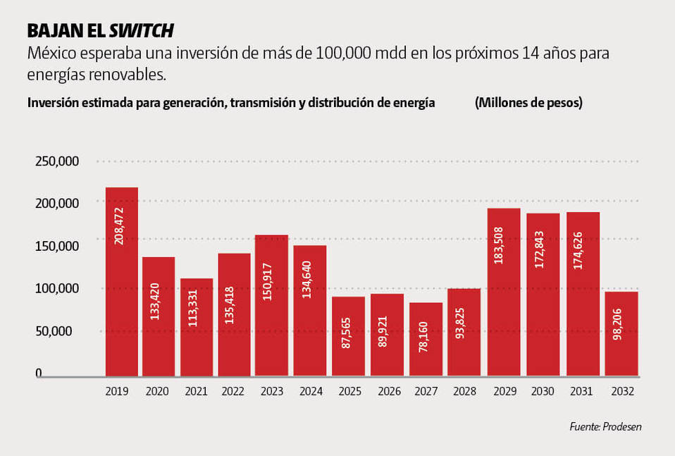 La Asociación Mexicana de Energía estima que se requerirán inversiones por 100,000 mdd entre 2018 y 2032 para la generación, transmisión y distribución de energía en el país, es decir, casi 7 mdd en promedio al año. Lo anterior, con el objetivo de atender el crecimiento exponencial de la demanda energética. Según el Programa de Desarrollo del Sistema Eléctrico Nacional (Prodesen), en la última década la industria eléctrica creció a una tasa anual promedio de 3%.