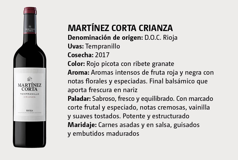 También puedo sugerir un maridaje del Evo de Guelbenzu, que iría de maravilla con un estofado de buey, y el Martínez Corta Crianza con un entrecôte a la pimienta.