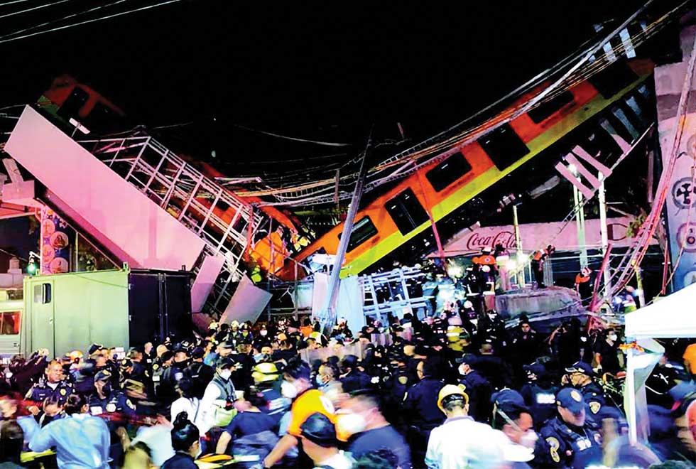 Un estruendo ensordecedor y una nube de polvo blanco marcaron la tragedia: un convoy del metro cayó al vacío y quedó colgado en el tramo elevado de la Línea 12, entre las estaciones Olivo y Tezonco, el 3 de mayo alrededor de las 22:20 horas. El saldo total fue de 26 fallecidos y 98 lesionados y se abrió una investigación para deslindar responsabilidades.