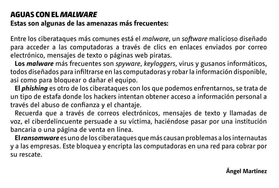 Para Juan Marino, gerente de Ciberseguridad Regional de Cisco, el usuario es una pieza fundamental para evitar caer en un ciberataque, por lo que sugiere identificar los canales de comunicación oficiales de las instituciones financieras y portales de venta en línea y ver el tipo de información que pueden solicitar.