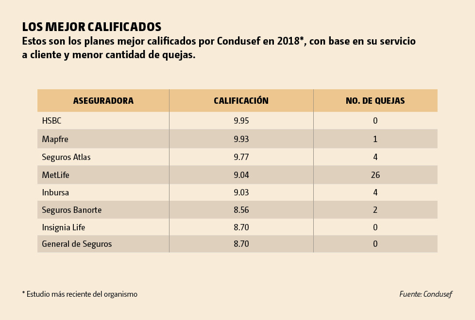 El mercado de aseguradoras es vasto, sin embargo algunas compañías ofrecen mejores productos o servicio al cliente que otras; para que tu experiencia sea la mejor, revisa la información que la Comisión Nacional para la Protección y Defensa de los Usuarios de Servicios Financieros (Condusef) tiene publicada en su página web sobre estas entidades financieras.