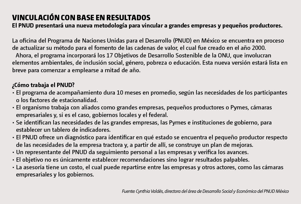 Llegar a este grado de integración entre empresas grandes y pequeños productores fortalece el mercado interno, genera empleos y permite romper el aislamiento, que es una de las limitantes para las pequeñas y medianas empresas (Pymes), coinciden Cynthia Valdés y Joel Narváez, especialistas del PNUD.